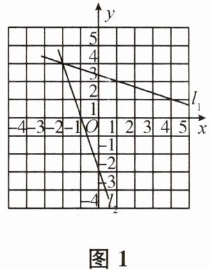 3. 如图1是在同一平面直角坐标系内作出的一次函数$y_{1},y_{2}的图像l_{1},l_{2}$.如果$y_{1} = k_{1}x + b_{1},y_{2} = k_{2}x + b_{2}$,那么方程组$\begin{cases}k_{1}x - y_{1} = - b_{1},\\k_{2}x - y_{2} = - b_{2}\end{cases} $的解是 (