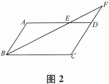 7. 如图2,已知在$□ ABCD$中,$AB= 5cm$,$AD= 8cm$,$\angle ABC的平分线交AD于点E$,交$CD的延长线于点F$,则$DF= $