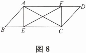 12. 如图8,在平行四边形ABCD中,点E,F分别在BC,AD上,$BE = DF$,$AC = EF$。
