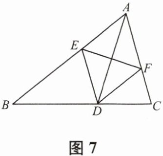 11. 如图7,AD是$\triangle ABC$的角平分线,AD的垂直平分线分别交AB,AC于点E,F,连接DE,DF。判断四边形AEDF的形状,并证明。