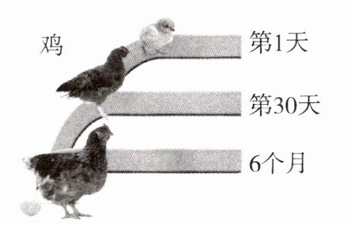 2. 下图展示了一只小鸡的生长过程,它破壳而出时,全身都是