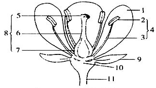 5. 柱头:6.花柱:7.子房;8.雌蕊;