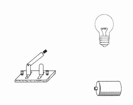 )用连接电池的两根导线的另一端接触小灯泡,确定能使小灯泡发光。