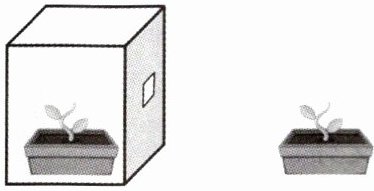 1. 如图所示,准备 2 株大小相同的植物,其中一株放在一个暗箱内,在箱子的一侧开一个孔。