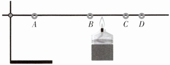 2. 点燃酒精灯,观察金属条上蜡环的掉落顺序。