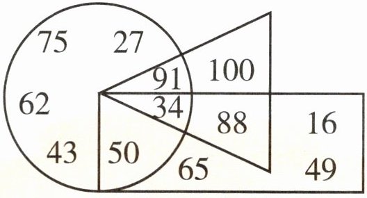 (1)既在圆里,又在长方形里的数有34和50,比50小的数是34。