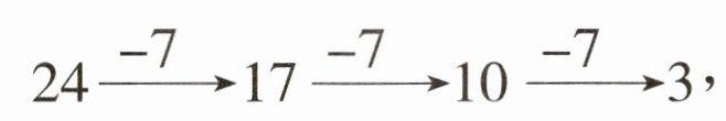 ,减去几个7就能装满几筐,可得可以装满3筐,还剩3个西瓜。