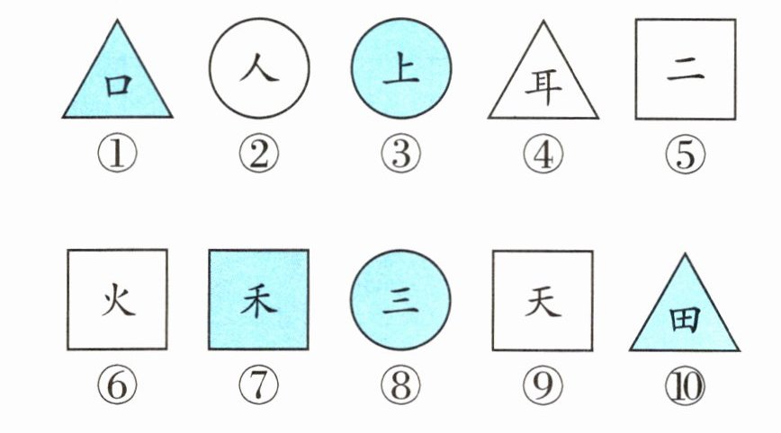 例1 语文课上,琪琪认识了很多汉字。她用自己学过的部分汉字制作了下面的卡片,请按要求填写。(填序号)