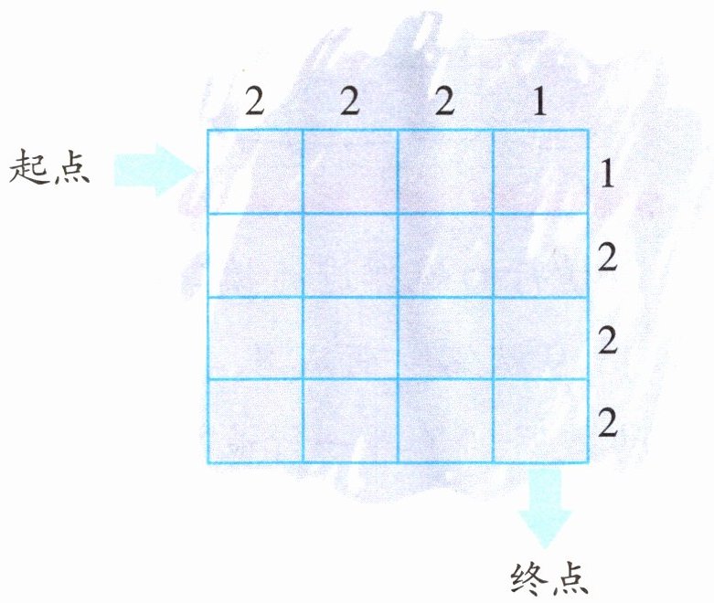 规则:(1)每一行最后面的数字代表路线在该行经过的方格数,每一列最上面的数字代表路线在该列经过的方格数;(2)用水平或者竖直的线,从起点开始,到终点结束,把必须经过的格子连接起来;(3)除起点和终点外,所有方格最多只能经过(一进一出)一次。