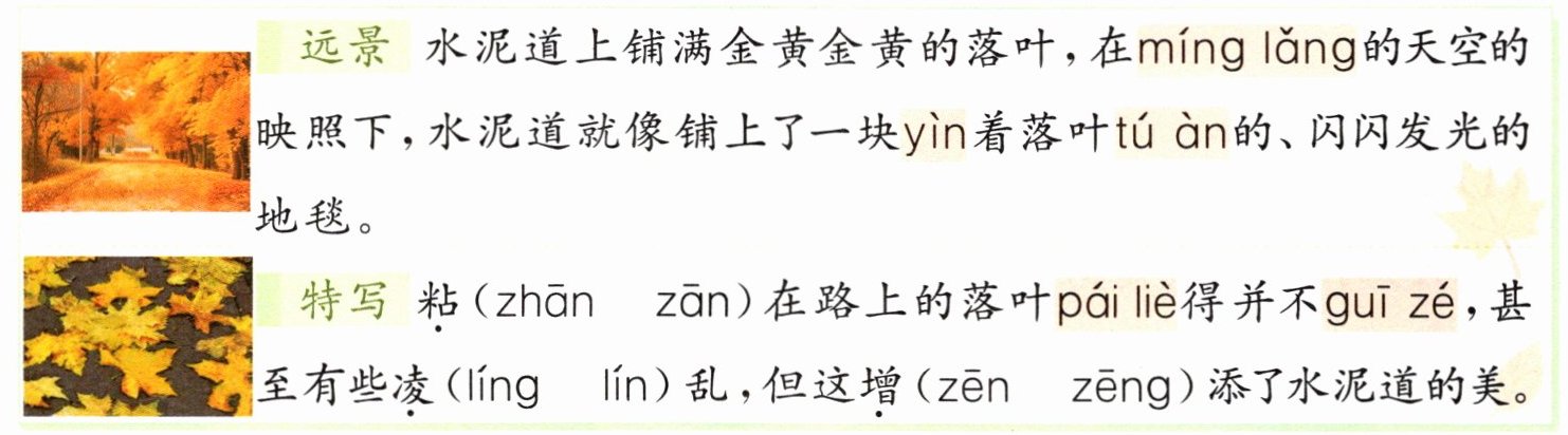 1 上学路上,作者拍了两张照片。读介绍,完成练习。