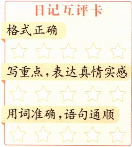 3 [评价成果] 读修改后的日记,在日记互评卡上给出评价。