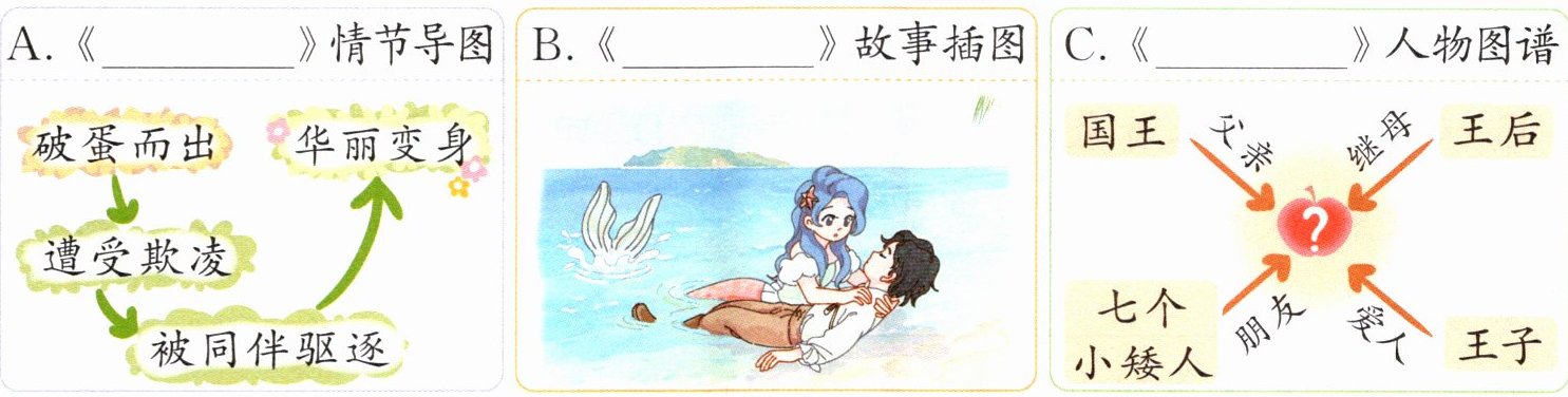 (1)A. 丑小鸭 B. 海的女儿 C. 白雪公主