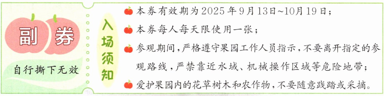 9. 请你结合参观券,为果园设计一条温馨提示。(2 分)______