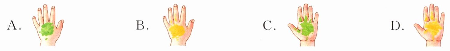 (2)作者把______比作手掌。如果我想用自己的手掌模拟,应该将手背涂成( ),将手心涂成( )。