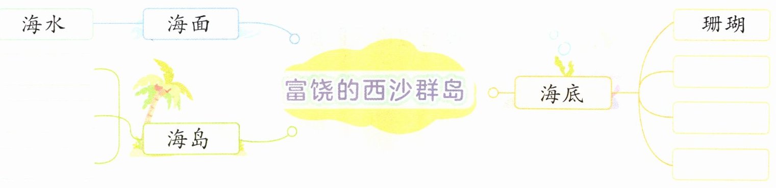 2 根据课文内容,补全西沙群岛“景物介绍图”。