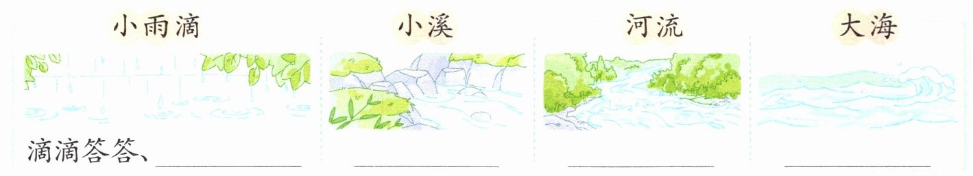 (2)水给我们带来哪些动听的声音呢?补充摘抄卡,再完成练习。