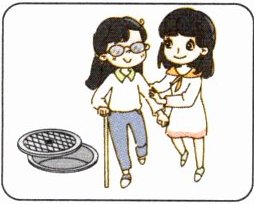 5. × √ × √ 示例:四 我们应该像第四张图片中的小女孩一样,平时在路上看到盲人时帮助他们躲避危险,还可以主动扶盲人过马路,主动让出盲道,用实际行动关爱盲人。