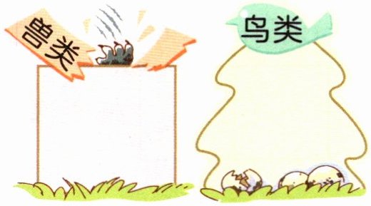 解析 注意 què 中的 ü 上两点要省略,“锦”读前鼻音。兽类通常指有四条腿、全身生毛的哺乳动物,所以猛虎属于兽类;鸟类全身有羽毛,大部分都会飞,所以孔雀、锦鸡、雄鹰、大雁、百灵是鸟类。