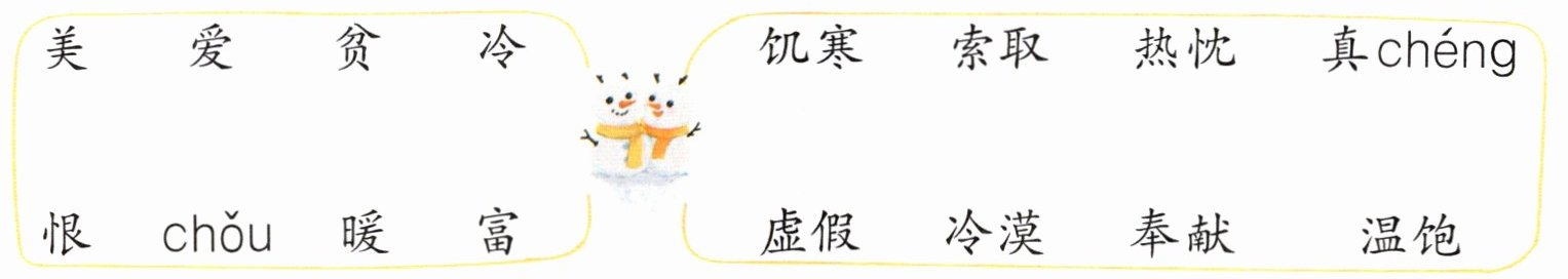 小明有两个字不会写,用拼音替代了,帮他写出来:____、____。