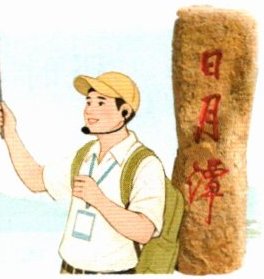 3 把本课学习的词语补充完整,完成日月潭的导游词。