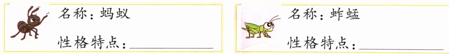 4. 请你根据短文内容,补充蚱蜢和蚂蚁的卡片。
