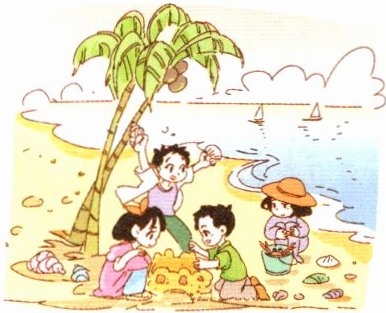 解析 根据图片和句子描述的场景,填入合适的修饰语,使句子更加生动、具体。例如第一个空,可以填"金色的、柔软的、宽广的",让人一看就能想象到沙滩的样子。