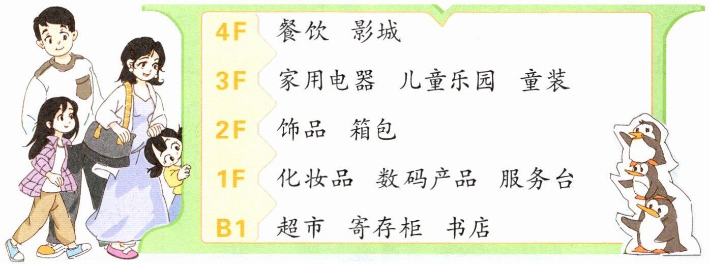 6 文文一家去商场玩。阅读商场楼层示意图,完成练习。