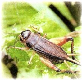 草丛里,有一只摇摆着长长触角的黄褐色大蛐蛐,神气活现的。