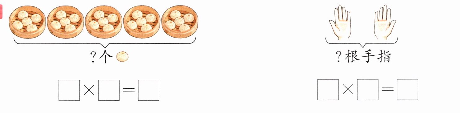 解析 每个笼屉里有5个包子,有5个笼屉,求一共有多少个包子,就是求5个5相加的和,列式是5×5,根据乘法口诀“五五二十五”计算。