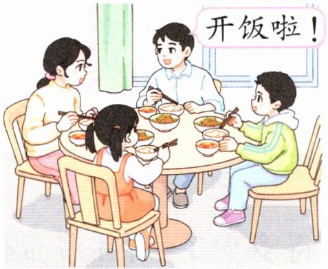 (1)从图片中可以看出小宇一家有$4$口人,通常情况下每人使用$2$根筷子,求一共用了多少根筷子,就是求$4$个$2$是多少,用乘法计算,可根据乘法口诀“二四得八”得出结果。