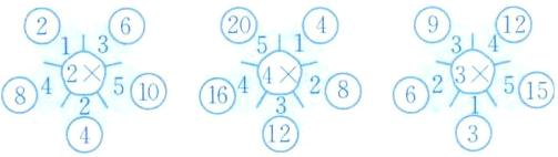 解析 用“二四得八”可以计算2×4=8和4×2=8这两个乘法算式。将题中的算式和图逐一分析,能用这两个乘法算式中的任意一个表示的,就可以用这句口诀计算。