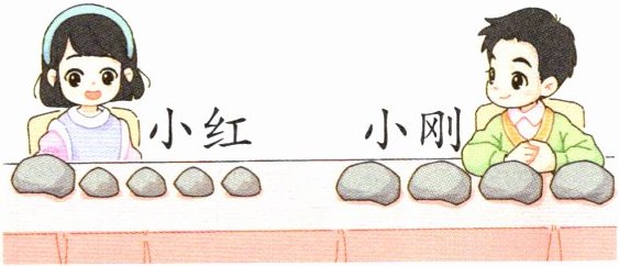 4 石头记数游戏:1个 表示“5”,1个 表示“1”。小红和小刚用这种方式记录了他们各自的图书数量,请你根据算式提出问题。