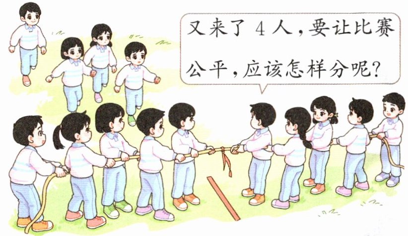 解析要让比赛公平,两队的人数要同样多。原来两队的人数相等,又来了4人,这4人要平均分给两队,每队分2人。