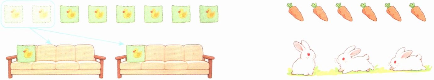 解析由题图可知,有2张沙发,把8个抱枕平均放在2张沙发上。动手分一分,如下图,每张沙发上放4个。