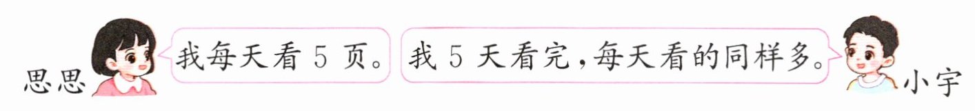 方法一:20÷5=4(天) 4<5 方法二:20÷5=4(页) 5>4 口答:思思看得快。