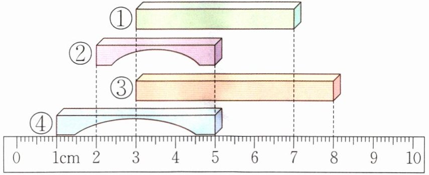 4 如下图,芳芳测量了4块积木的长度。①号积木长(