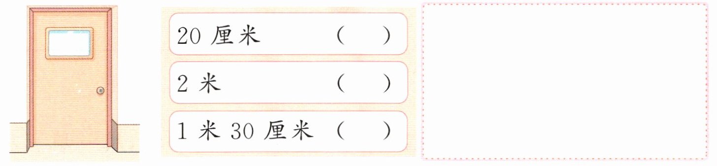 4 教室的门大约有多高? 先选一选(画“√”),再写写你是如何判断的。