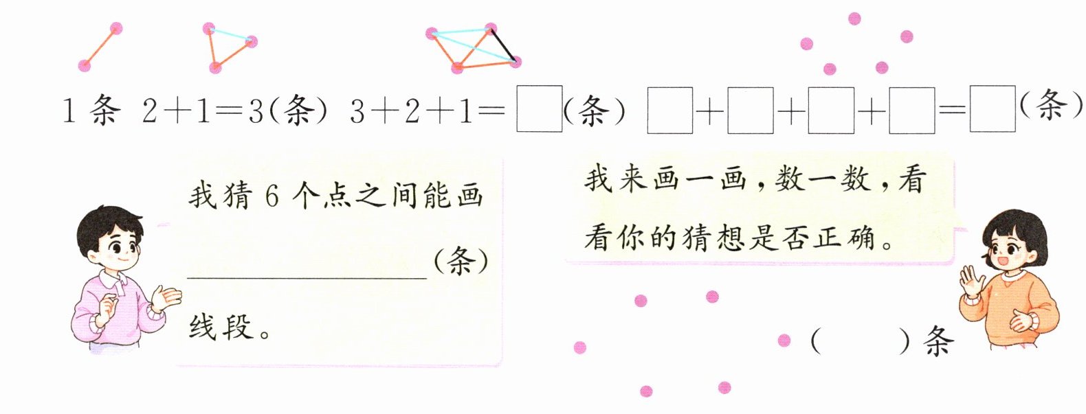 4个点→3+2+1=6(条)线段5个点→4+3+2+1=10(条)线段
