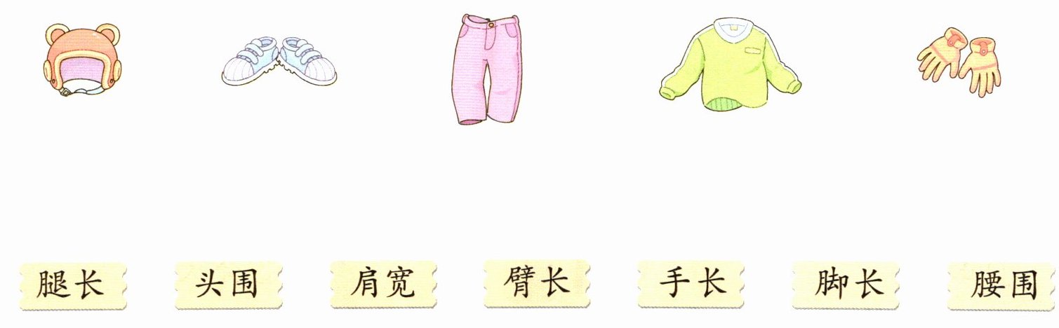 3 生活中,有很多情况下需要知道自己身体上一些部位的长度。购买下面这些物品时,你需要知道什么?连一连。