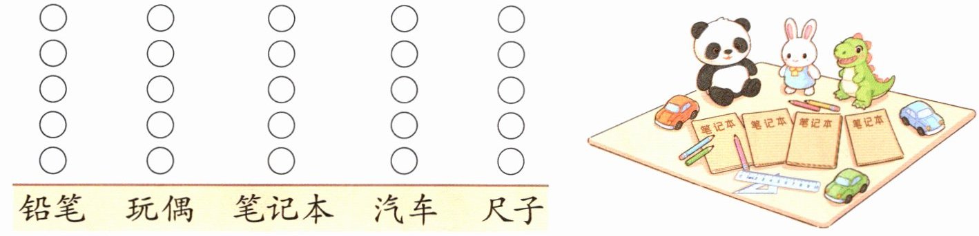 2. 皮皮的书桌上,( )的数量最多,( )的数量最少。