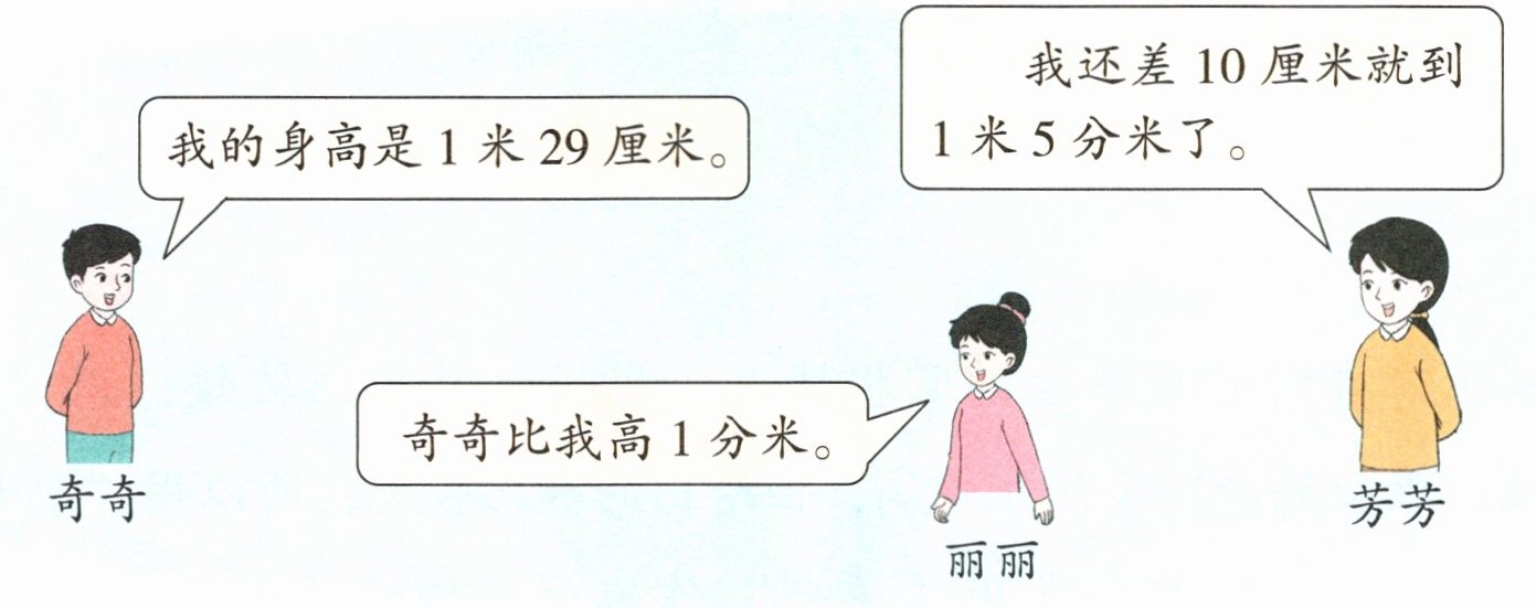 丽丽:1分米= 10厘米 129-10= 119(厘米) 119厘米<120厘米