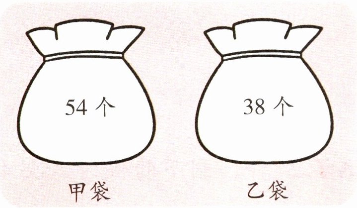 例1 有两袋糖,第一袋有66块,第二袋有48块。如果每次从第一袋拿3块放入第二袋,那么需要拿几次才能使两袋糖同样多?
