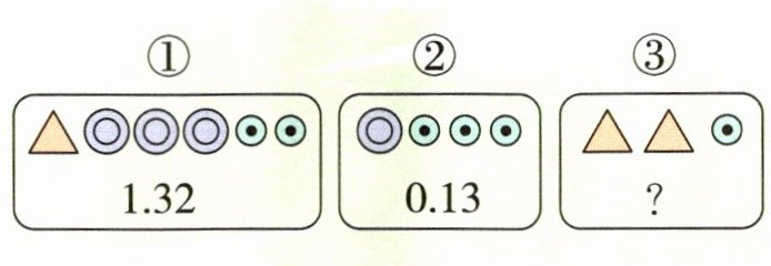 )。若每种卡片的张数不变(△有3张,◎有4张,⊙有6张),试着再摆一组有关小数的题目吧!