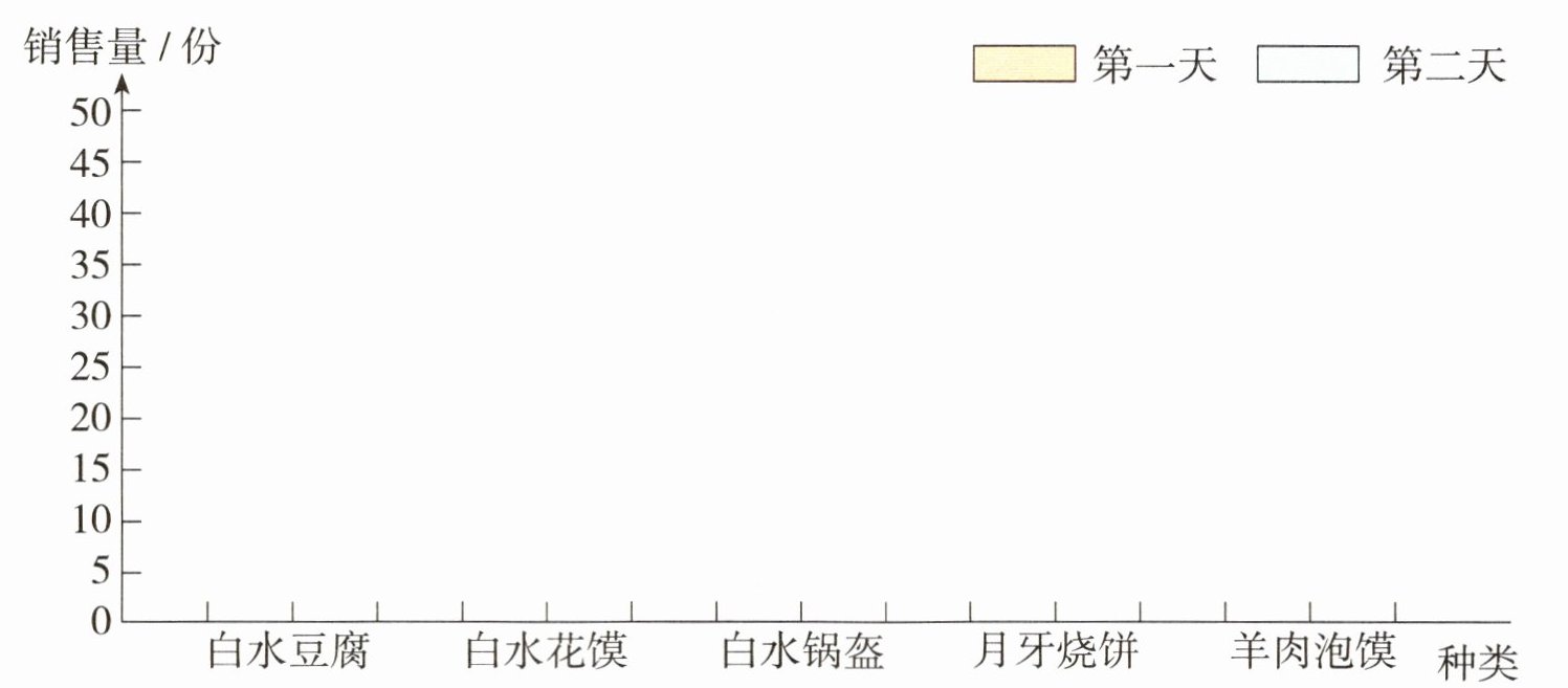 (3)端午节期间,该美食店第二天白水花馍比白水锅盔多卖了( )份;第一天卖的羊肉泡馍比第二天多( )份。