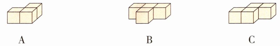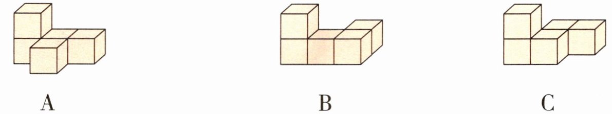 【解析】:根据从上面、左面、前面看到的图形进行立体拼搭。从上面看可知底层小正方体的排列形状,从前面看和左面看可确定每列和每行小正方体的层数,通过综合分析拼搭出立体图形,数出小正方体的个数为7块。
