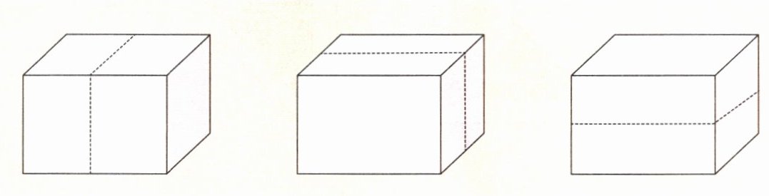 如下图,将一个长方体切割成两个小长方体,如果按下面三种不同的方式分割,表面积分别增加了$14cm^{2}$、$32cm^{2}$、$22cm^{2}$,则原来这个长方体的表面积是(