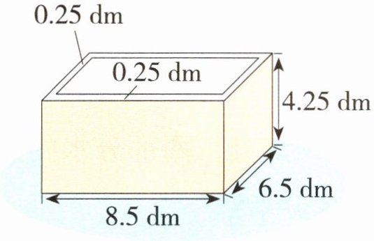 3. $ (8.5 - 0.25 × 2) × (6.5 - 0.25 × 2) × (4.25 - 0.25) = 192 (\mathrm{dm}^3) $