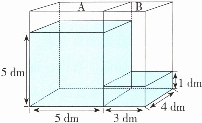 如下图,一个长方体水槽被一块玻璃隔板分成A、B两部分,两部分水的高度分别是5dm和1dm。将隔板抽出后,水槽里的水高