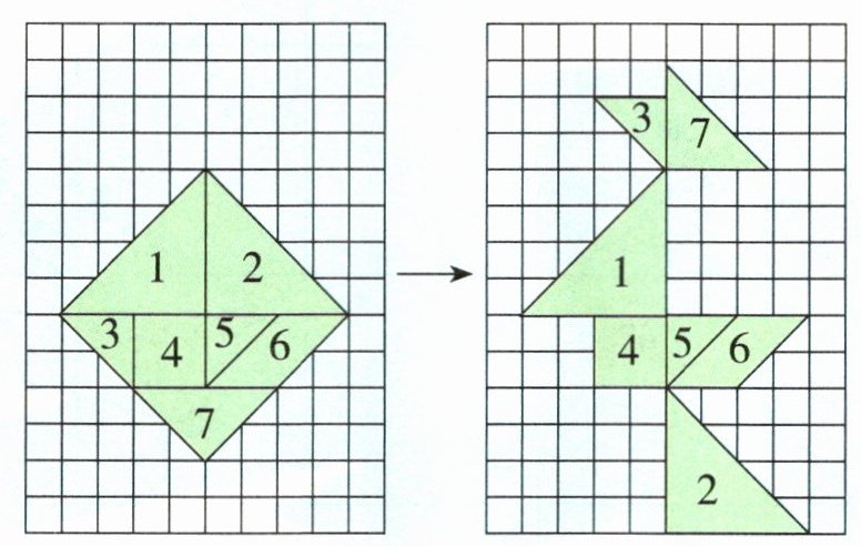 2. 下面左图中的七巧板是怎样通过平移或旋转得到右图的?
