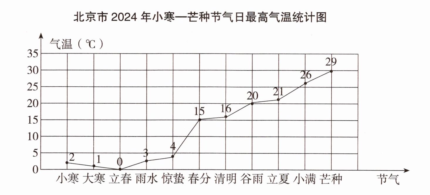 (3)从统计图可以看出,北京市2024年小寒—芒种节气日最高气温变化整体处于上升趋势。